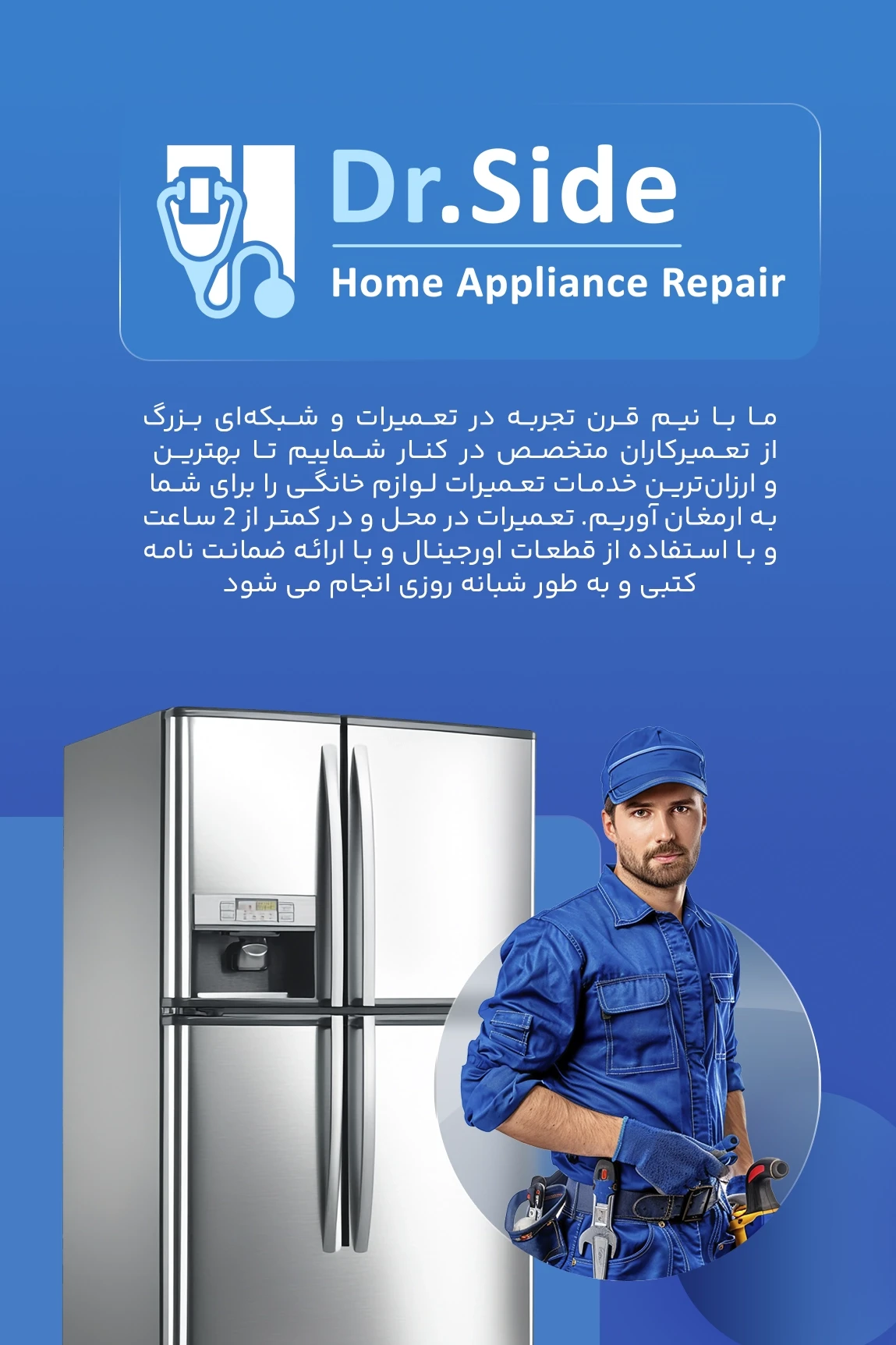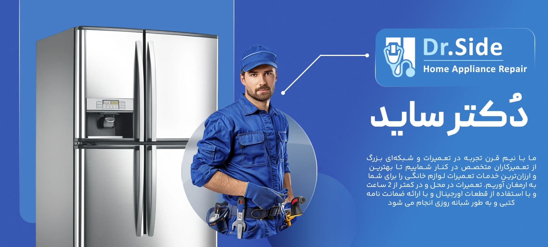 دکترساید دسته بندی خدمات تعمیرات یخچال مابه تعمیرات یخچال مابه توسط نمایندگی این برند مشاهده تعمیرات یخچال جنرال الکتریک تعمیر یخچال جنرال الکتریک در تهران به صورت 24 ساعت شبانه روز مشاهده تعمیرات یخچال فریزر و ساید بای ساید تعمیر یخچال فریزر و ساید بای ساید در اسرع وقت مشاهده تعمیرات یخچال وستینگهاوس تعمیر یخچال وستینگهاوس توسط بهترین تعمیرکاران تهران مشاهده تعمیرات یخچال پروفایل نمایندگی یخچال پروفایل در تهران مشاهده تعمیرات یخچال وایت هاوس تعمیر یخچال وایت هاوس به صورت تخصصی مشاهده چرا دکتر ساید تکنسین های متخصص مجموعه دکترساید با بهره گیری از نیروهای متخصص و حرفه ای در تلاش است تا بهترین خدمات را در سریعترین زمان ممکن به مشتریان عزیز خود ارائه کند. انجام تعمیرات به صورت کامل در محل بدون نیاز به جابجایی لوازم منزل خود کافیست با مشاوران ما تماس بگیرید، تا همکاران ما در سریعترین زمان ممکن متخصصین کارآزموده خود را در محل اعزام نمایند خدمات و پشتیبانی 24 ساعته مجموعه دکترساید با بهره گیری از متخصصین مجرب خود این افتخار را داشته تا همواره نسبت به مشاوره و پشتیبانی مشتریان اقدام نماید. مقالات ۲۹ آبان مقالات چند وقت یکبار یخچال را خاموش کنیم Posted by admin آبان 29, 1404 0 ادامه مطلب ۱۹ مهر مقالات تعمیر و تعویض فن یخچال سامسونگ Posted by admin مهر 26, 1404 0 ادامه مطلب ۱۵ مهر مقالات عیبیابی و رفع ۸ علت اصلی لرزش یخچال که باید بدانید Posted by admin مهر 15, 1404 0 ادامه مطلب ۱۴ مهر مقالات چرا فریزر یخچال یخ نمیزند؟ Posted by admin مهر 14, 1404 0 ادامه مطلب ۱۴ مهر مقالات علت یخ زدن کشوی یخچال فریزر Posted by admin مهر 15, 1404 0 ادامه مطلب ۱۵ شهریور مقالات بوی سوختگی یخچال Posted by admin شهریور 25, 1404 0 ادامه مطلب ۱۳ شهریور مقالات راهنمای جامع ریست کردن یخچال فریزر Posted by admin آبان 15, 1404 0 ادامه مطلب ۱۲ شهریور مقالات چرا آب و یخ یخچال شما طعم ناخوشایندی دارد؟ Posted by admin شهریور 25, 1404 0 ادامه مطلب ۱۲ شهریور مقالات علت روشن نشدن یخچال بعد از قطعی برق Posted by admin شهریور 25, 1404 0 ادامه مطلب ۰۹ شهریور مقالات کپک و بوی ماندگی داخل یخچال Posted by admin شهریور 16, 1404 0 ادامه مطلب ۰۸ شهریور مقالات چرا فیوز یخچال به محض روشن شدن میپرد؟ Posted by admin شهریور 9, 1404 0 ادامه مطلب ۲۷ مرداد مقالات علت خاموش شدن یخچال بوش Posted by admin مرداد 27, 1404 0 ادامه مطلب
