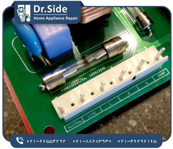 وقتی سیمپیچ داخلی کمپرسور اتصال کوتاه داشته باشد، به محض اینکه فرمان شروع به کار را از ترموستات دریافت میکند، یک جریان عظیم و کنترلنشده را از برق میکشد. این جریان به قدری شدید است که فیوز بلافاصله آن را به عنوان یک خطر شناسایی کرده و مدار را قطع میکند. این یکی از دلایل اصلی پریدن فیوز به محض روشن شدن یخچال است. تشخیص خرابی کمپرسور یخچال معمولاً قطعی است؛ زیرا این قطعه قابل تعمیر نیست و باید به طور کامل تعویض شود. تعویض کمپرسور یک فرآیند پیچیده است که نیاز به تجهیزات تخصصی برای جوشکاری و شارژ گاز دارد و باید حتماً توسط تکنسینهای حرفهای مانند متخصصان دکتر ساید انجام شود.